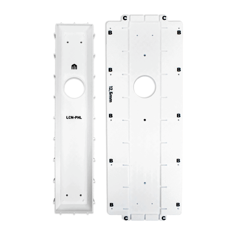 Mit dem LCN-PHL ist es möglich, LCN-GT6L oder LCN-GD6L flächenbündig in einer Hohlwand (einfach oder doppelt Beplankt) zu montieren. Der Rahmen wird mit der mitgelieferten Lampenauslassdose montiert.